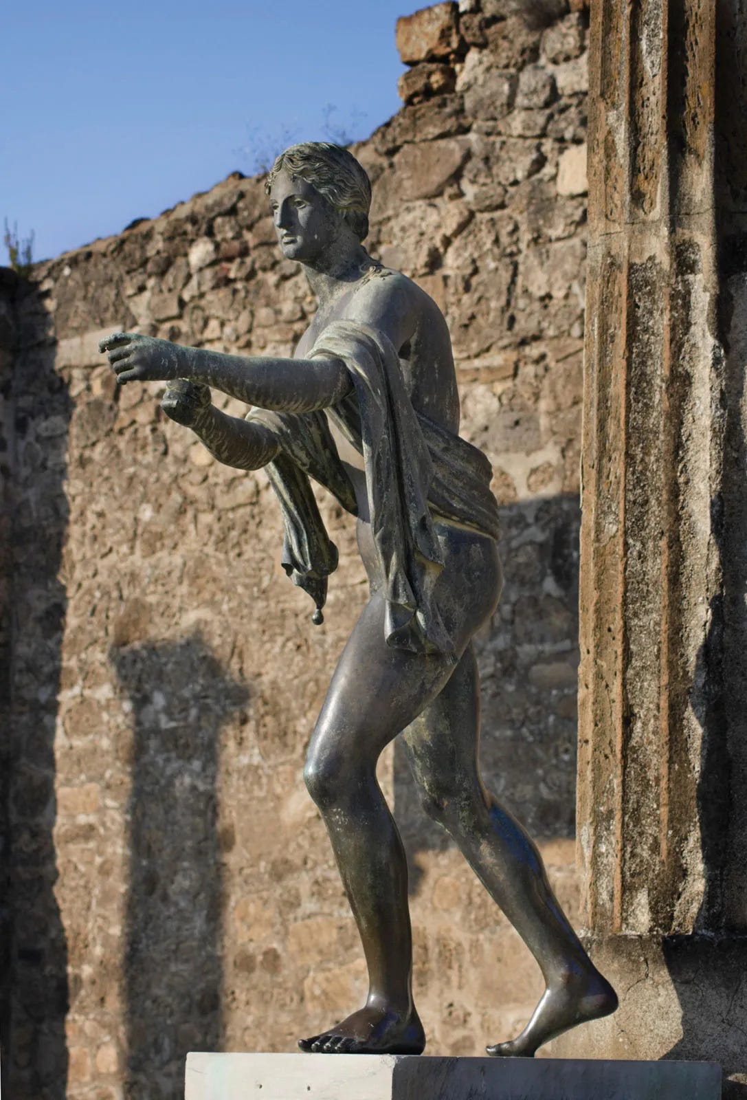 To the ancient Greeks, Apollo was associated with the sun. His light was not just physical, it was moral. Apollo made people more self-aware and self-responsible, enabling them to purify themsleves of guilt by honest self-scrutiny. Apollo presided over laws and consitutions and had the gift of prophecy. Apollo foretold the future. His forename, Phoebus, meant bright and pure. Apollo’s brightness, like the sun’s, protected against disease.